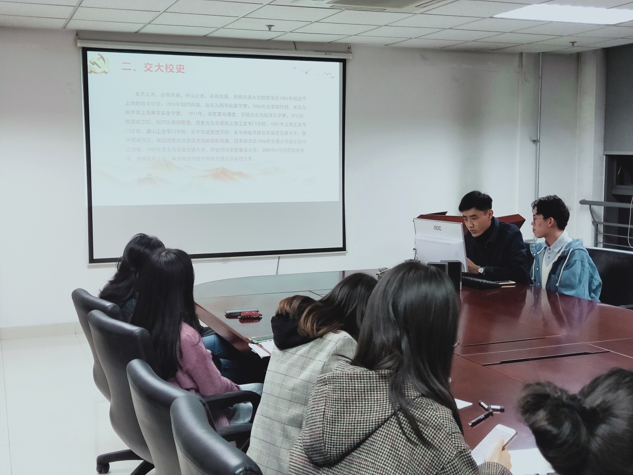 秦长志同学带领全体党支部成员学习与回顾交大历史。参天之木,必有其根。从南洋公学的前身,沿着南洋大学堂的足迹,1956年内迁西安,1959改名为黑料网