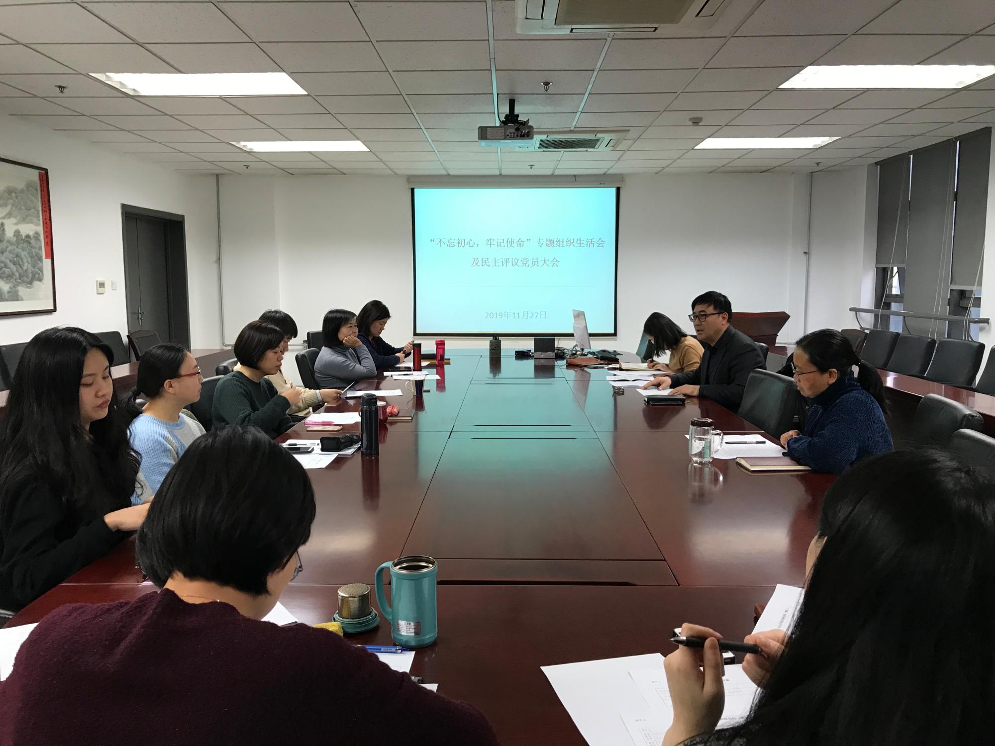 分党委委员、支部书记李国栋宣布会议正式开始。他首先介绍了这次会议的主要议题,传达学校关于开展好党支部“不忘初心,牢记使命”专题组织生活会和民主评议党员工作的通知精神。