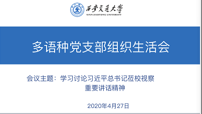 4月27日晚8点,多语种教工党支部在线召开专题组织生活会,学习讨论习近平总书记莅校视察重要讲话精神。会议由分党委委员、支部书记李国栋主持,学院党委副书记许明应邀列席会议。