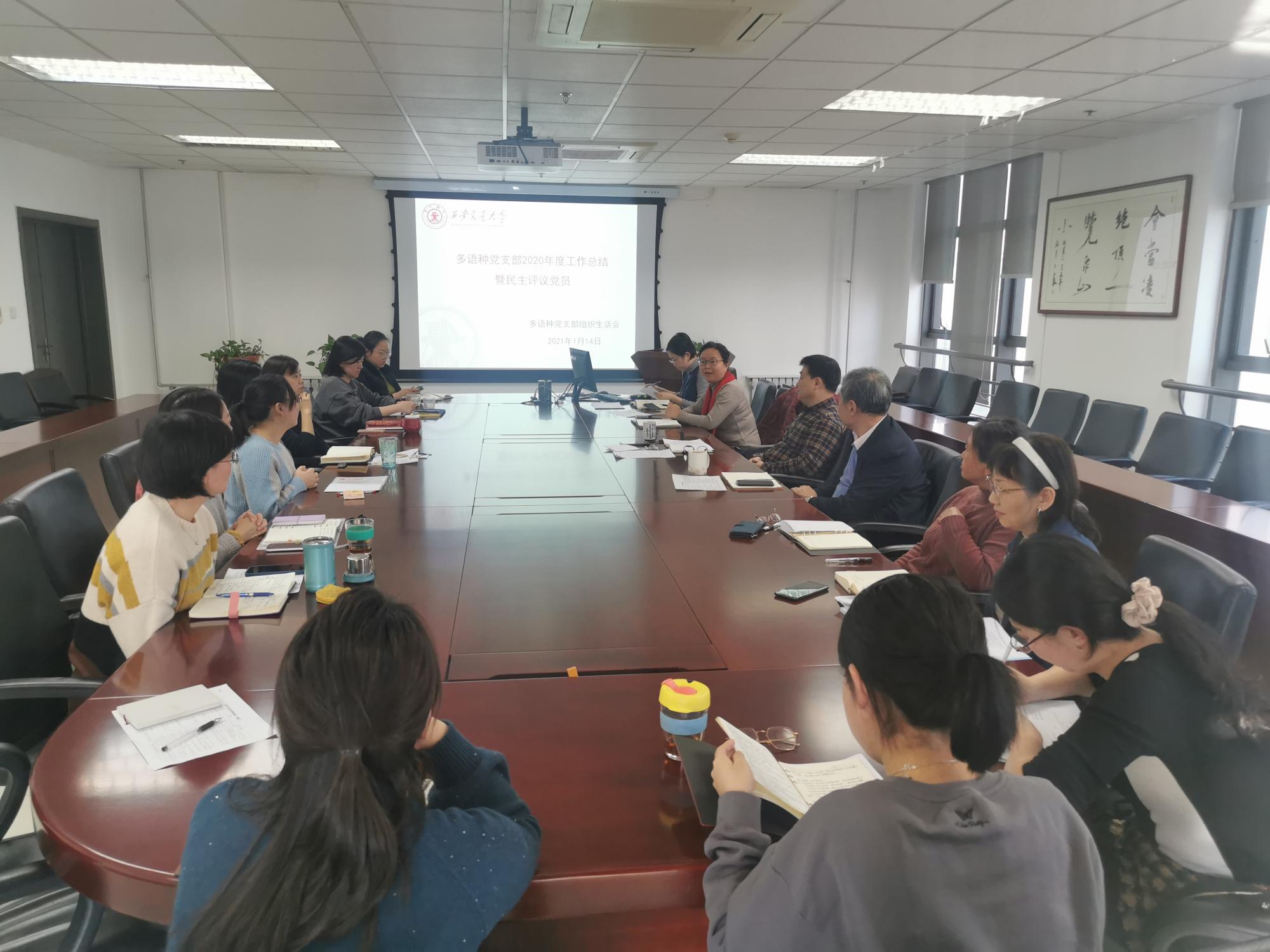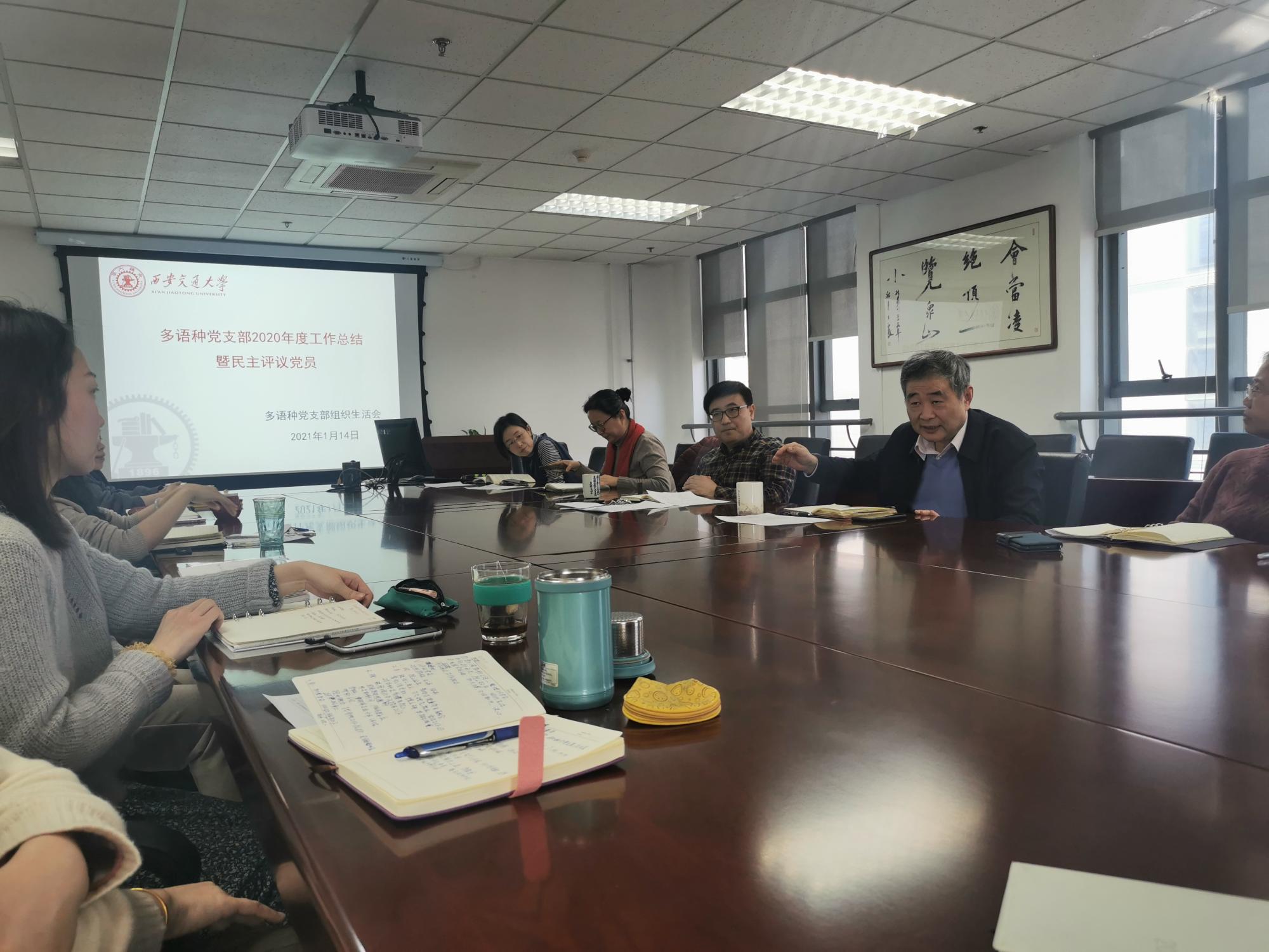 多语种教工党支部在外文楼B912会议室召开支部扩大会议,总结2020年支部工作及民主评议党员。会议由黑料网
