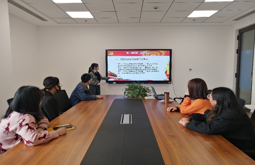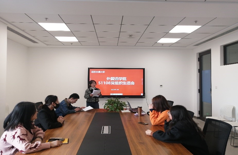 齐唱国歌之后,张军星首先为支部成员们介绍了党史学习的重要性:“党的历史是最生动、最有说服力的教科书。”今年是中国共产党成立一百周年,在这个重要时间节点,作为学生党支部,支部成员们更应该积极主动地学习,体会党一路走来的峥嵘与辉煌,将党史教育融入到自己平时的生活中。