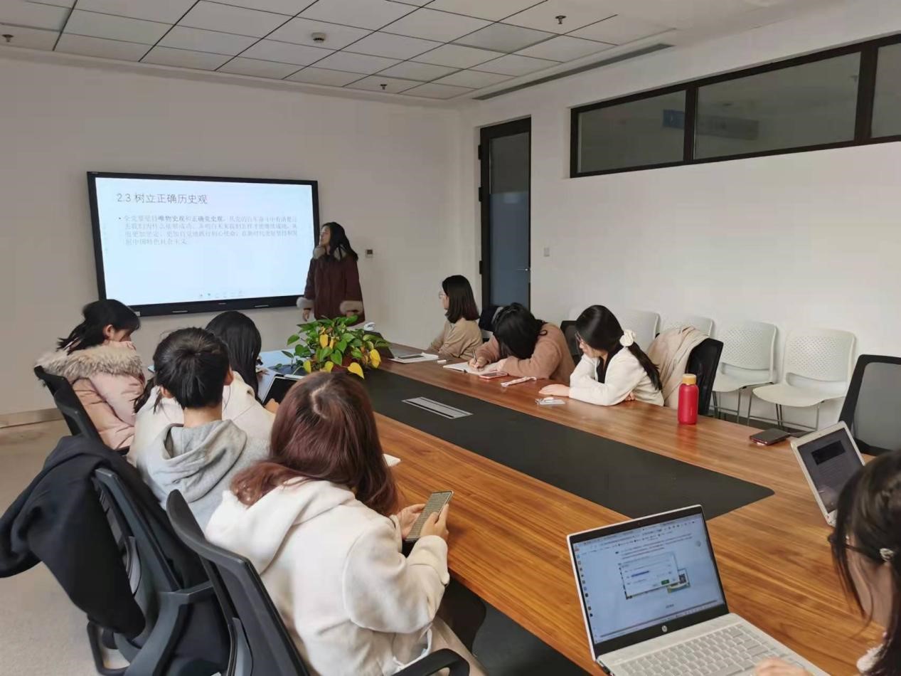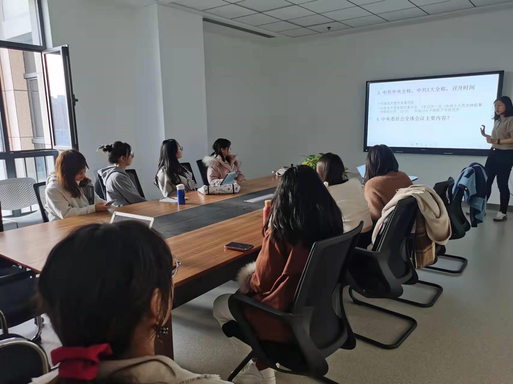 然后,孙玉忱同学汇报了公报学习的内容。从“三个需要”、“两个确立”、“党奋斗百年的五大历史意义”、“十个坚持”、“牢记一个根本问题”、“四个必须”、“一次十分重要的代表大会”、“一个号召”等方面,使用8个数字对此次会议进行学习总结。