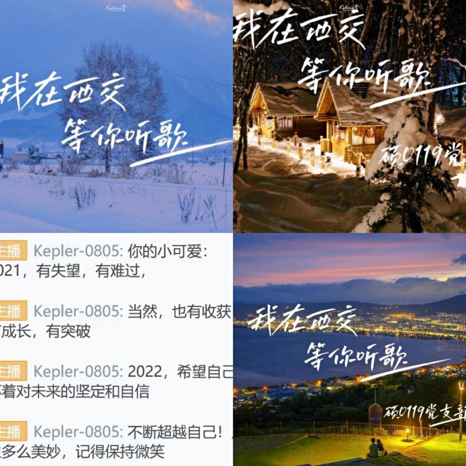 为减少同学们在疫情期间的心理压力,保持良好的心态,以百倍的斗志面对疫情,硕0119党支部特推出线上音乐会“我在西交,等你听歌”节目。每天晚上20:00,在线上直播间如期播放大家已点歌曲,并一起互动。活动开展连续4天,弹幕数超过100个,最高人气值达1133。在新的一年,温暖将继续伴随大家左右。