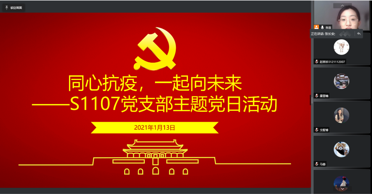硕1107班党支部召开线上主题党日活动,学院党委书记张长安参会指导,支部所在班级的同学共同参与,会议由支部书记李菲主持。