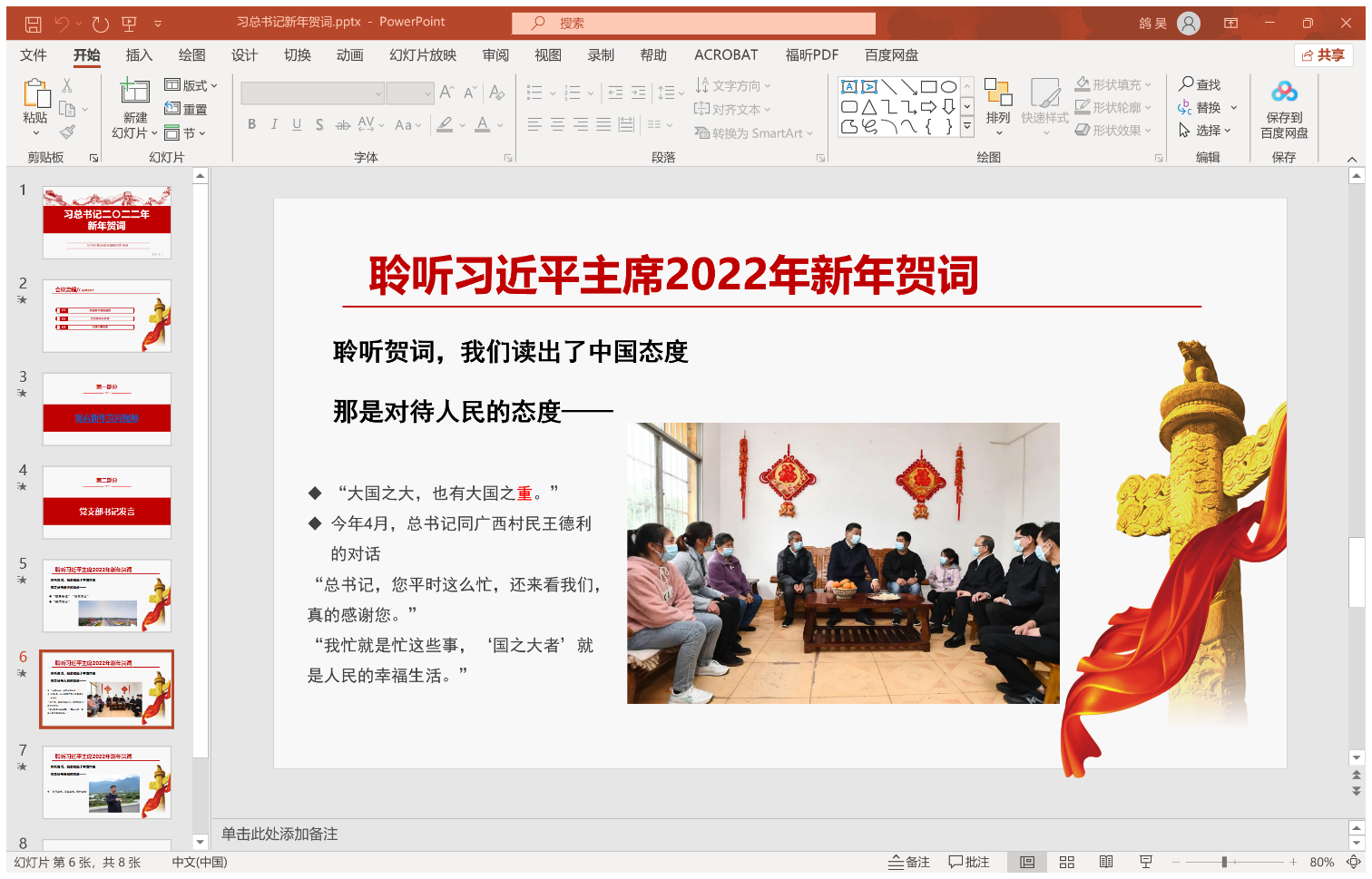 支部视频学习习近平总书记2022年新年贺词视频,吴鸽从对历史的态度、对事业的态度、对人民的态度、对自然的态度四个方面领学习近平总书记新年贺词,并号召党员要严格践行以人民为中心的发展思想,密切联系群众,结合党史学习教育,持续为师生办实事,增强身边同学的获得感与幸福感。