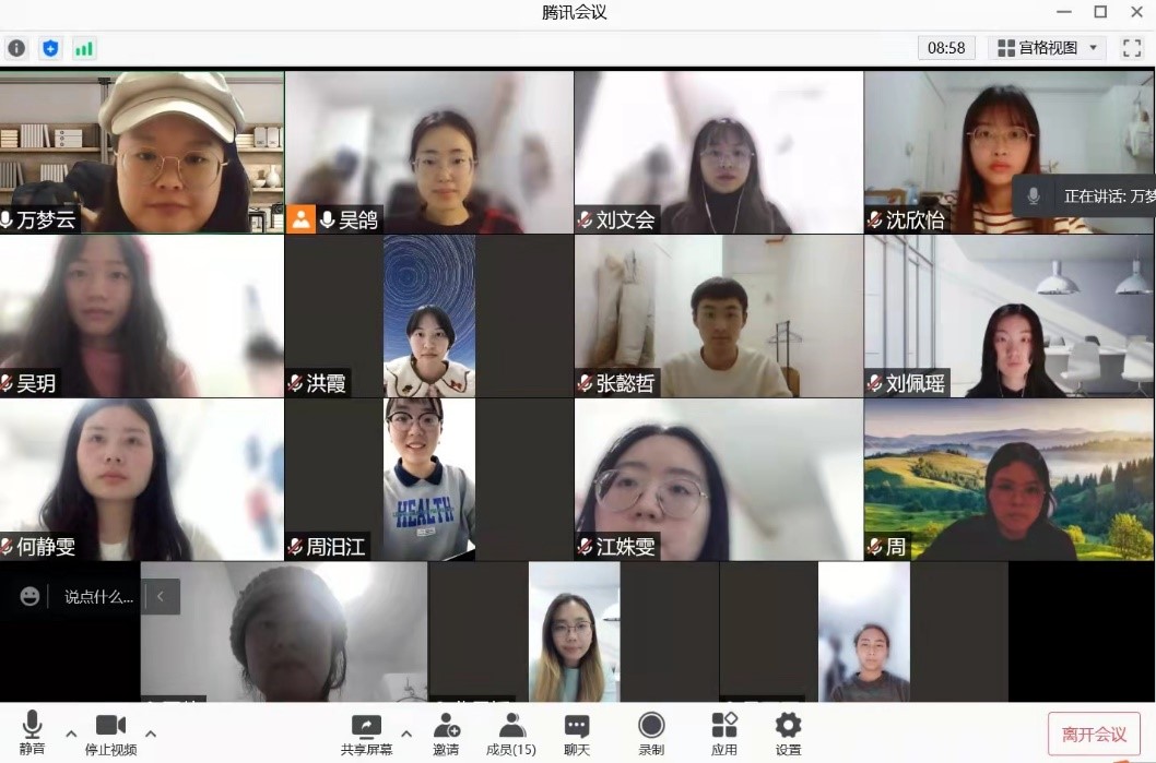最后,吴鸽进行了总结,并询问大家在疫情期间遇到的困难。目前西安疫情形势仍然严峻,但在封校管控期间,硕1109党支部的党建工作依然没有放松。多名党员积极参加志愿者工作,辅助核酸检测,帮助搬运物资等。面对部分同学出现的焦虑情况,多位党员主动安抚同学情绪,鼓励同学们相信党和政府,认真做好疫情防控,携手打赢这场疫情攻坚战。