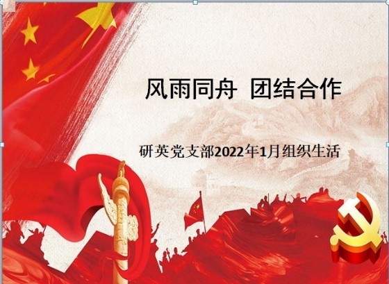 王芙蓉领学习近平总书记2022年新年贺词及《中共中央关于党的百年奋斗重大成就和历史经验的决议》等重要内容,分析强调了“风雨同舟团结合作”的重要性与迫切性,随后总结支部2021年度工作情况、汇报2022年工作计划。