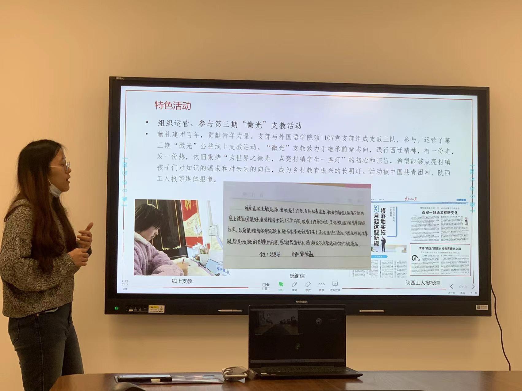 首先,党支部书记郭顺鑫总结了过去一年的工作。这一年中,支部组织生活内容较为丰富、形式多样,支部成员积极性有所提高,与其他党支部联系更加紧密。党支部成员在科研、学科竞赛、志愿服务等方面也取得了显著成绩。此外,党支部组织运营、参与了第三期“微光”支教活动,支部成员积极参与,成果显著。