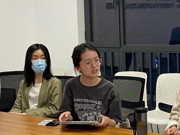 听完两段分享后,两校党员代表积极分享感悟。硕1109党支部英语笔译专业的入党积极分子毕熙亚认为,红色基因是中国革命历史的积淀,是一代代青年推进伟大事业的不竭动力,我们应当将红色基因转化为成长成才的扎实本领。日语口译专业的党员刘佩瑶则表示,通过这次学习,她意识到了如今我们所拥有的优质教学资源和生活条件的来之不易,我们要珍惜学习机会,发挥专业特长,了解国际传播,勇担时代重任,让世界听到中国声音。中国人民大学教育学院教育行政管理专业的李兆静和高等教育专业的张韵歌则从人大的校史和黑料网