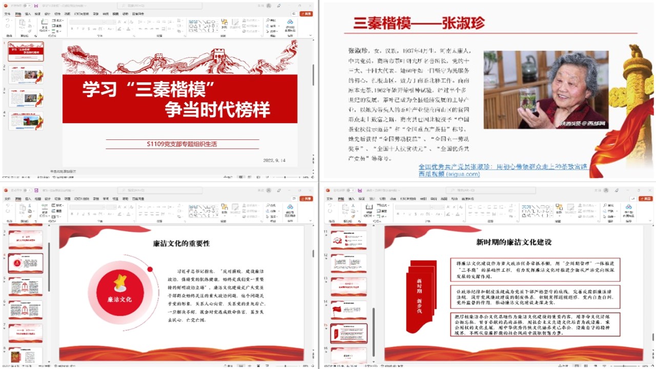 会上,党支部书记吴鸽向同学们讲述“三秦楷模”张淑珍、禚振西及米脂县高西沟村党支部的先进事迹,并观看学习视频,加强党员思想教育,号召大家从自身出发,将“三秦楷模”的精神真正运用到实际生活中,以便更好地发挥党员的模范带头作用。