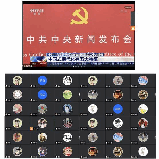 硕1109班党支部召开党的二十大精神专题学习会。此次学习会由党支部组织,党团班共同学习,学生通过原原本本学习党的二十大报告,观看新闻发布会,更进一步学习宣传贯彻党的二十大精神。