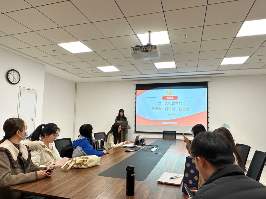 会前,支部书记于欣欣组织全体党员共同学习党的二十大精神,深刻领悟“两个确立”的决定性意义,增强“四个意识”、坚定“四个自信”、做到“两个维护”,了解五个“必由之路”,弘扬伟大建党精神,对党的二十大精神进行了深入分析和讨论,使党员深入了解在中国式现代化征程中,当代青年的责任与使命。支部成员王宁恺表示,将坚定不移听党话、跟党走,在实现中华民族伟大复兴的时代洪流中砥砺奋发、勇毅前进,成就青春、成就梦想。