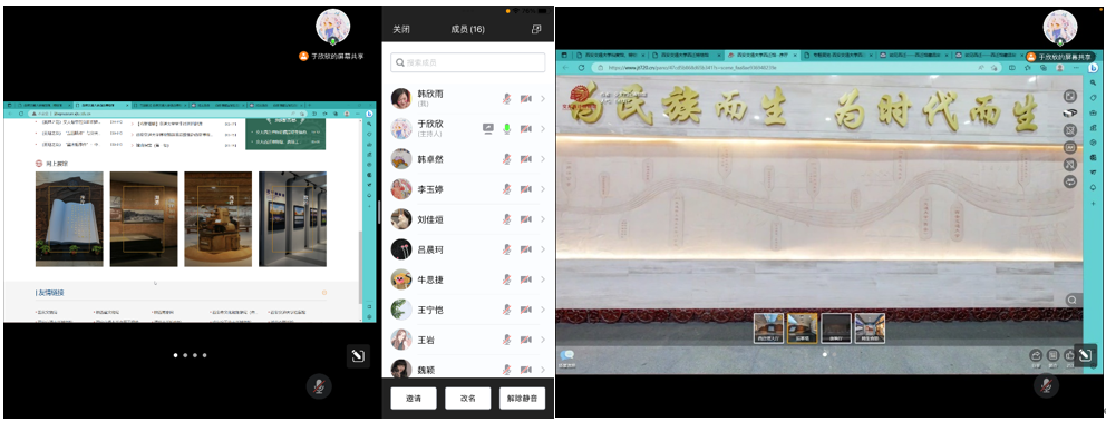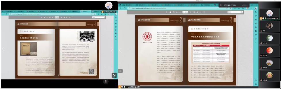 兴庆校区,由序厅、放映厅、展厅和多功能厅组成。支部书记于欣欣以溯源、西迁和致远三条支线为顺序来介绍,带领支部成员线上参观交大西迁博物馆,帮助同学们感受从溯源南洋到交通大学西迁,“从南洋走来”到“与国家民族同向同行”,从“永远飘扬的旗帜”到习近平总书记对“西迁精神”重要指示的伟大征程。