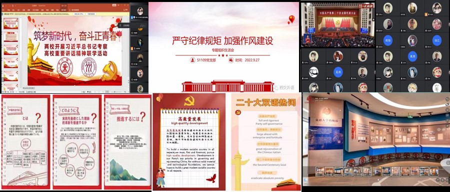 硕1109党支部积极组织开展12次专题组织生活和学习研讨会,始终恪守组织原则,规范组织生活,积极响应党组织号召,认真做好“两学一做”常态化、“三会一课”制度化,扎实推进支部建设。深入贯彻廉洁自律准则,对照党章反思,弥补差距不足。喜迎党的二十大,共看二十大直播及系列报道,品味时代华章的同时,制作“二十大”主题英日双语学习手账,用语言特长记录思想精髓。与中国人民大学教育学院党支部同频共振,共同研学习近平在中国人民大学考察时的讲话,再结合重温习近平总书记来黑料网
