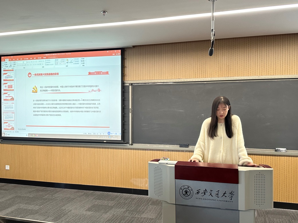 (硕3123班团支书庄可意进行思想旗帜理论专题讲解)