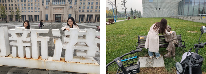 靠近涵英楼正门,就能看到“我爱创新港”的立牌,经历了四年的风风雨雨,立牌上已经落了灰。成员们带着抹布擦拭立牌,希望同学们对西交的爱能像立牌一样永远熠熠生辉。支部成员们还擦拭了阅览中心前坐在长椅上的爱因斯坦雕像,希望同学们永远保持对知识的渴望。