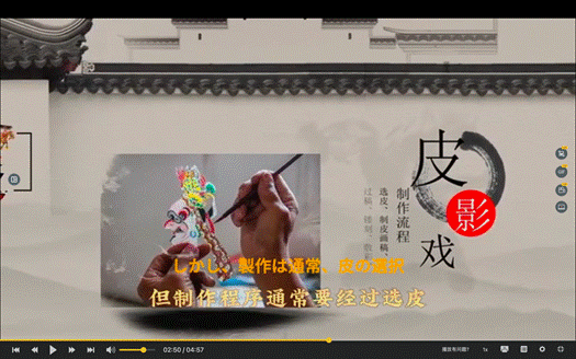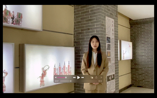 支部成员黄沙沙同学以视频配音与制作的方式,用日语对皮影戏的来源进行了讲解。庄可意同学在陕西省秦腔博物馆中的华县皮影展馆对皮影戏经典作品《穆桂英挂帅》进行了英文讲解。
