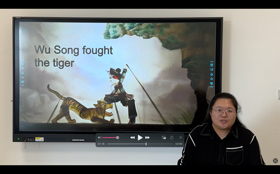 支部成员柴宇琛同学以武松打虎的皮影戏作为例子,用英文讲解了皮影戏的相关内容。