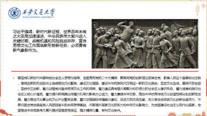 接下来,陈仁恺雯同学带领大家学习了“习近平对宣传思想文化工作作出的重要指示”,详细介绍了该指示的内容,鼓励大家学而信,学而用,学而行,坚定不移的维护党的领导地位。做一名政治上、品质上、作风上合格的团员,坚定不移的实践党提出的各项方针政策,并每时每刻以国家主人翁的姿态投入到党团的建设中来。大家纷纷表示,新时代新征程,世界百年未有之大变局加速演进,中华民族伟大复兴进入关键时期,战略机遇和风险挑战并存,宣传思想文化工作面临新形势新任务,作为交大学子,必须要有新气象新作为。