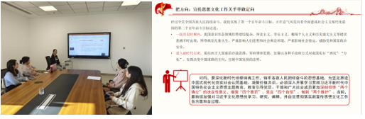其次,杜丽华就全国宣传思想文化工作会议为何如此重要展开讨论。习近平总书记曾指出,一个政权的瓦解往往是从思想领域开始的。这使支部成员们深刻认识到宣传思想文化工作对党的战略定力、政治安全和中国道路方向的重要性。孔悦杭指出,中华民族伟大复兴正处于关键时期,宣传思想文化工作需要展现新气象、新作为,以助推中国走向更强大的未来。