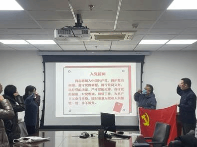 会上,举行新党员入党宣誓仪式,同时,老党员重温入党誓词,提醒自己不忘初心,发挥党员模范带头作用,将支部建设成为相互依存、相互成就、互联互通的优秀支部。