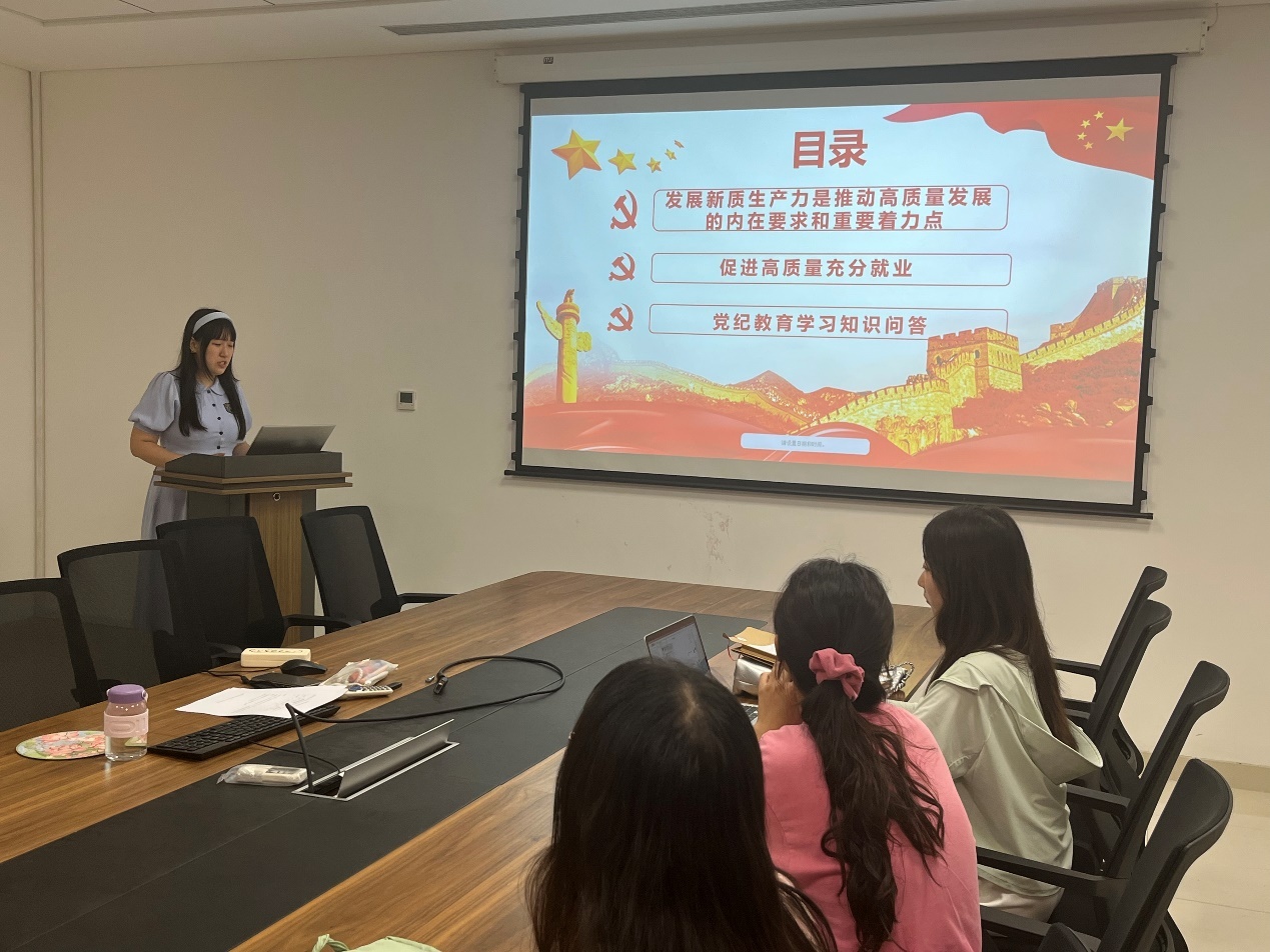 硕2118班党支部于涵英楼5-5077会议室开展“聚焦新质生产力,助力高质量发展”组织生活,由支部书记于欣欣主持,支部全体成员积极参与。