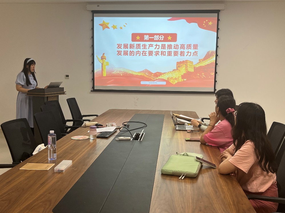 首先,支部成员围绕《求是》杂志发表的习近平总书记重要文章《发展新质生产力是推动高质量发展的内在要求和重要着力点》开展理论学习,领悟习近平总书记关于发展新质生产力的重要论述,深入解读新质生产力的科学内涵、核心要素和实践要求,对新质生产力理论知识系统梳理,也结合当前经济社会发展的实际,分析新质生产力在推动高质量发展中的重要作用。