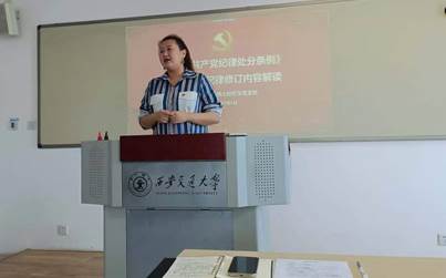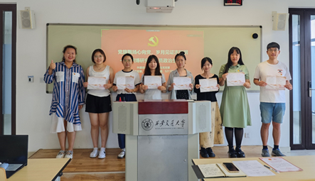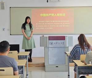 活动伊始,与会成员齐唱国歌,并由姜家奇领誓,重温入党誓词。随后,薛璇玑老师向安旭飞等12名上半年入党的同志赠送“政治生日贺卡”,并送上生日祝福和亲切慰问,对党员今后学习、工作、生活提出殷切希望,让同志们感受到组织的温暖和期待。