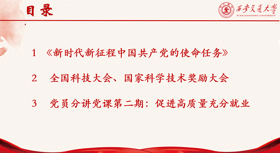 最后,党员陈昕雨为大家带来党员分讲党课第二期——促进高质量充分就业。习近平总书记曾强调:“促进高质量充分就业,是新时代新征程就业工作的新定位、新使命。”陈昕雨对中共中央政治局就促进高质量充分就业进行的第十四次集体学习进行了充分解读,并带领大家学习就业指南,帮助同学们规避择业就业时常见的“坑”。