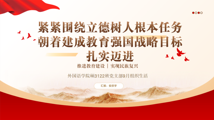 的一员,我深感自己肩负着传播中华文化、促进国际交流的重任。今后,我将更加努力学习,不断提升自己的专业素养和跨文化交际能力,为建成教育强国贡献自己的一份力量。”在讨论中,大家纷纷表示要积极响应党的号召,将立德树人作为根本任务,贯穿于日常学习和生活的各个方面。同时,也提出了许多富有创意和实用性的建议,如加强理论学习、开展志愿服务、组织学术交流等,旨在通过丰富多彩的活动形式,提升支部的凝聚力和战斗力。