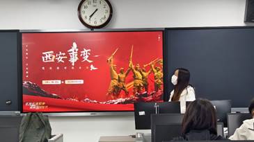 最后在党史故事我来讲环节,英语二组陈仁恺雯同学在西安事变88周年纪念日到来之际为支部成员讲述了关于西安事变的党史故事。陈仁恺雯同学以清晰明了的讲述带领支部成员回顾了西安事变的历史背景、发展过程、重大意义与后续结局,加深了支部成员对西安事变作为“时局转变的枢纽”、促成以国共两党合作为基础的抗日民族统一战线建立的重大历史意义的理解。