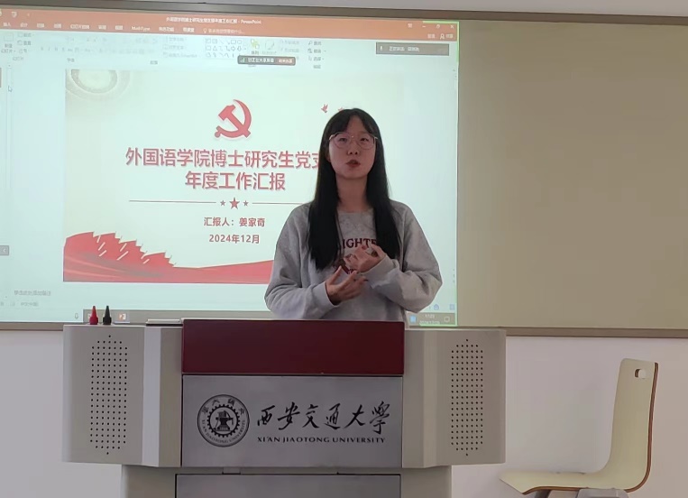 陈向京院长对一年以来支部开展的工作表示了肯定,并强调,广大博士研究生不仅要提升科研能力,还要自觉将研究与国家战略结合起来,为社会进步贡献外语学科力量。此外,她还表示,身体是革命的本钱,在竞争压力日益加剧的情况下,博士生要学会调控情绪,放松心情,并进行适当的体育锻炼,提高自身抗压能力和身体素质。