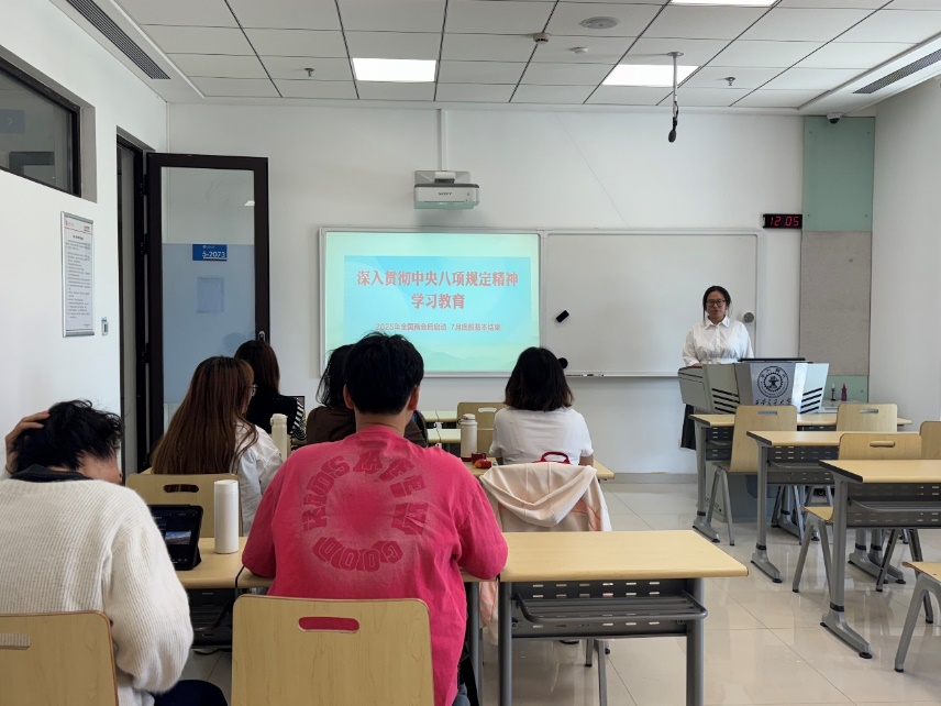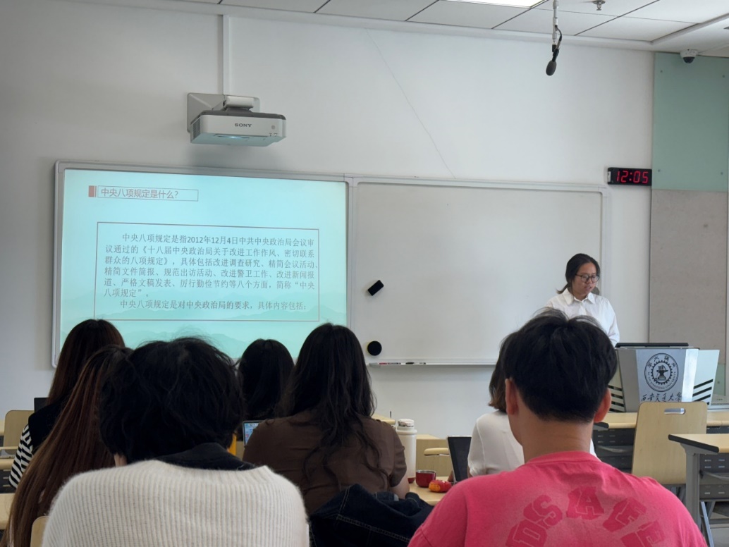 最后,王佳祎对本次组织生活进行了总结。中央八项规定精神是新时代党的建设的重要内容,全体党员同志应深刻领会其精神实质,将其内化于心、外化于行。她鼓励党员们在今后的学习和生活中,以更高的标准要求自己,积极参与各类实践活动,以实际行动践行党员的初心和使命。支部成员们一致表示,将继续秉持求真务实的精神,深入学习党的理论知识,在新时代的征程中主动展现青年党员的担当与风采。
