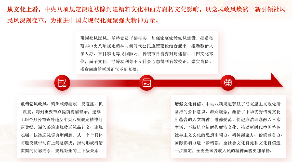 会议第一部分,左灿然从政治、经济、社会、文化、国家治理五个方面深入解读了《八项规定改变中国》的核心内容。她强调,以习近平同志为核心的党中央就制定中央政治局关于改进工作作风、密切联系群众的八项规定,以身作则,以上率下,踏石留印,抓铁有痕,以徙木立信之举实现时代风气之变,为推动党和国家事业取得历史性成就、发生历史性变革,推动当代中国在政治、经济、社会、文化和国家治理等方面发生巨大变化提供了有力作风保障,为以中国式现代化全面推进强国建设、民族复兴伟业积聚了强大正能量。
