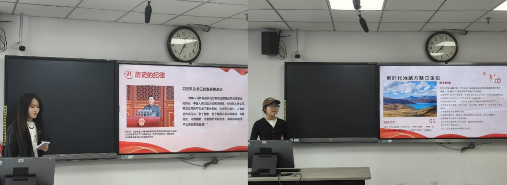 吕晓溪同学聚焦“从中央八项规定看新时代治藏方略”,解读习近平总书记“治国必治边、治边先稳藏”的战略指引,介绍“十个必须”根本遵循,“团结、富裕、文明、和谐、美丽”五大目标与“稳定、发展、生态、强边”四件大事。她介绍了新时代党的治藏方略的内容和目标,以及西藏自治区党委结合当地实际情况,贯彻中央八项规定,通过落实“三个必到”原则、推行“边境小康村+民族团结一家亲”双推进模式等举措,推动边疆的长治久安与高质量发展。