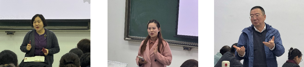 教工党员们结合问卷调查结果,针对每一个具体问题给予了专业而细致的回应。程冰老师通过详实的数据和深入的剖析,解读了学科排名提升背后所体现的学院综合实力的提升。曹兴潭老师引导学生思考教育的本质,鼓励大家在多元比较中找到真正热爱的领域。彭凤玲老师就外语学生竞赛积极性问题给出了具体建议,鼓励同学们勇于尝试,表示学院老师们随时准备为大家提供指导和支持。李阳萍老师从教学实践角度,鼓励同学们在课堂上积极主动留印象,并勉励同学们注重学习过程中的细节积累,逐步建立学习自信。最后,曹浩煊老师作总结发言,特别强调了班主任和学业导师在人才培养中的关键作用。